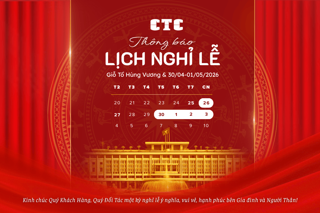 Công ty Cổ phần Thiết Bị Điện và Chế Tạo Biến Thế Hà Nội (CTC) trân trọng thông báo đến Quý Khách hàng và Quý Đối tác về lịch nghỉ lễ năm 2026 như sau: